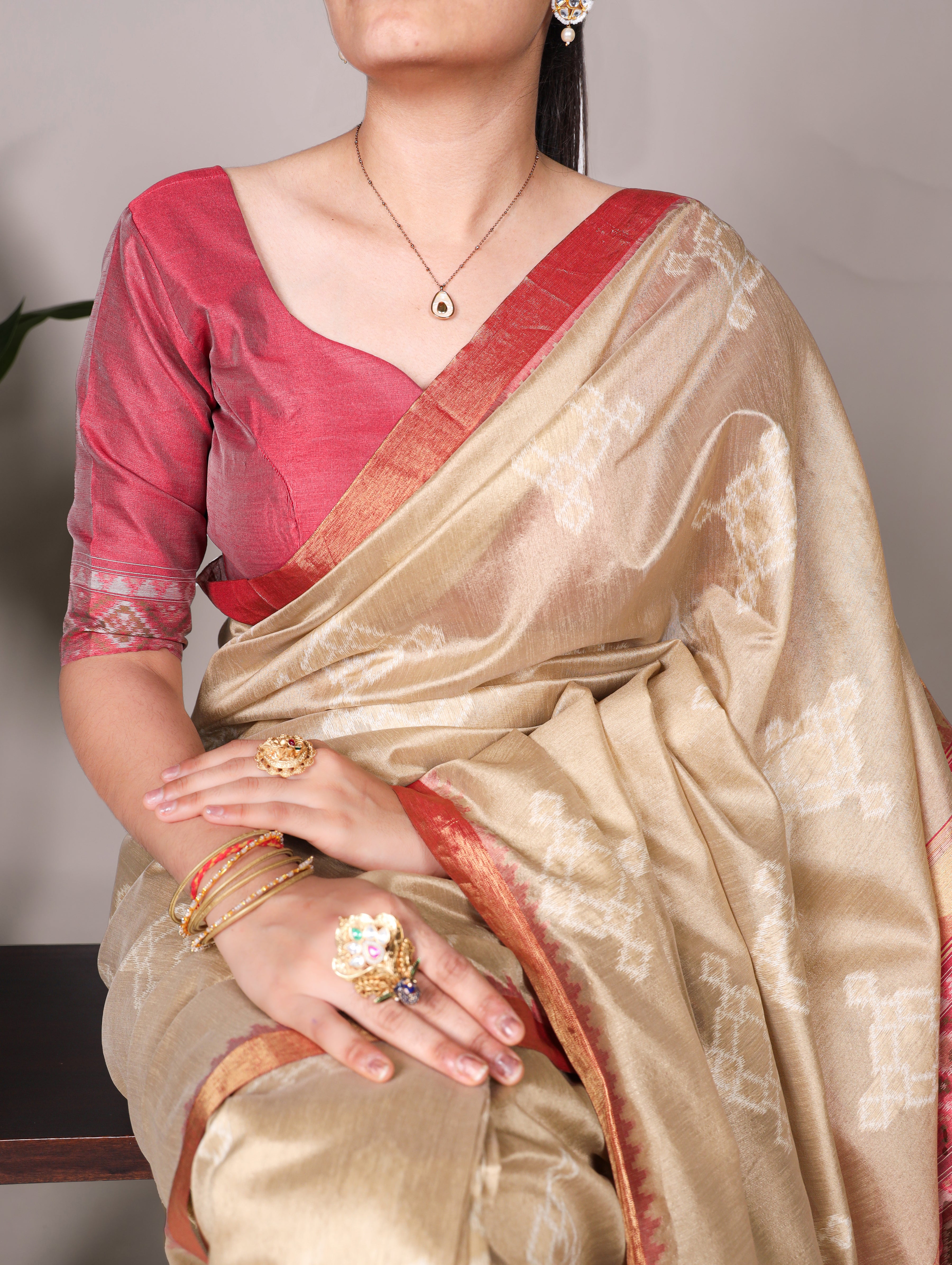 blouse work : plain with zari weaving work